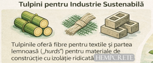 Tulpinile de cânepă sunt o resursă esențială pentru industria sustenabilă. Fibrele rezultate sunt utilizate în textile durabile, iar partea lemnoasă a tulpinii este transformată în materiale de construcție cu izolație ridicată, precum hempcrete. Aceste materiale contribuie la reducerea amprentei de carbon în sectorul construcțiilor.